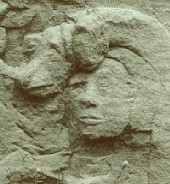 Königsköpfe, nackte Frauengestalten, Schlangen und Heldengesichter